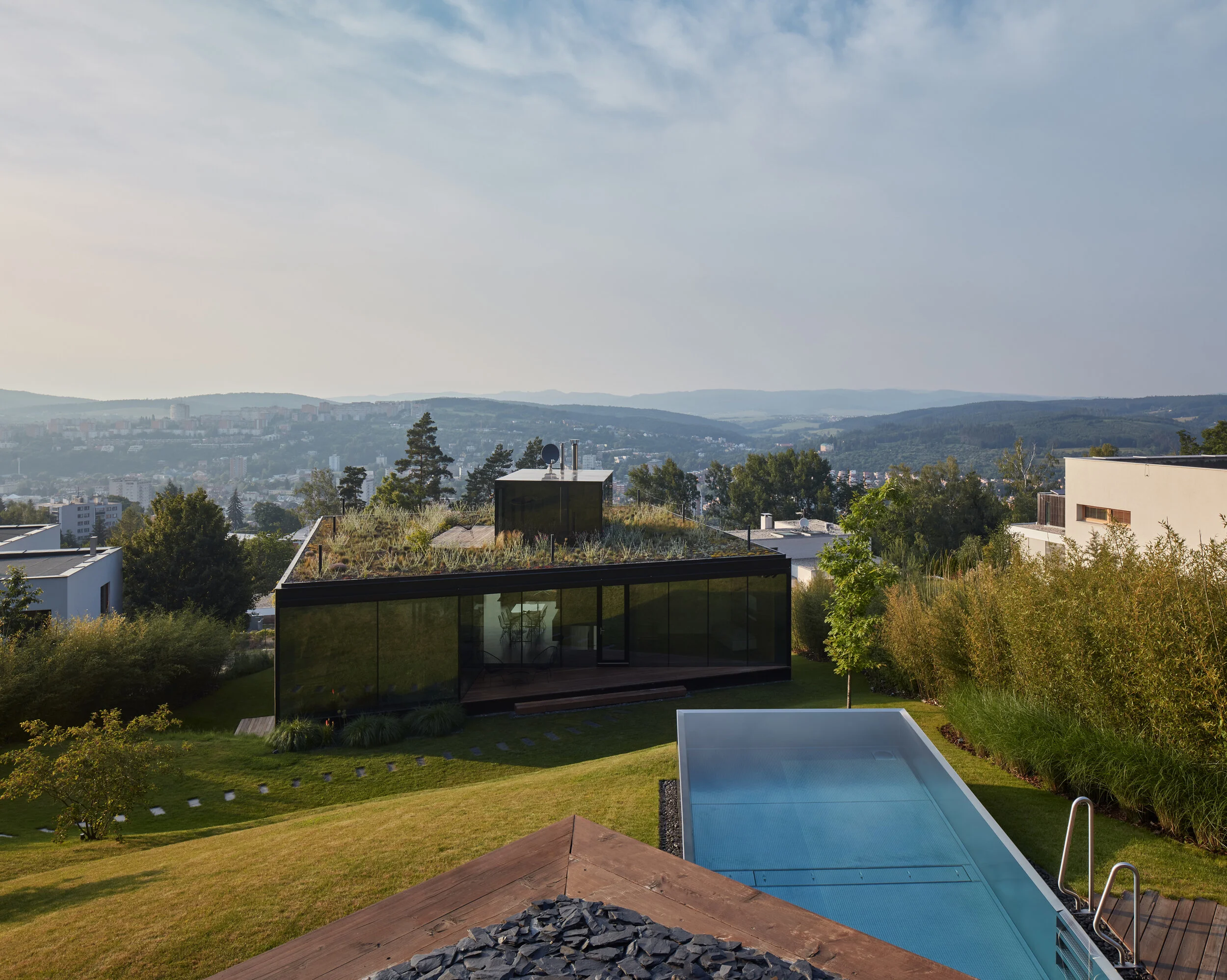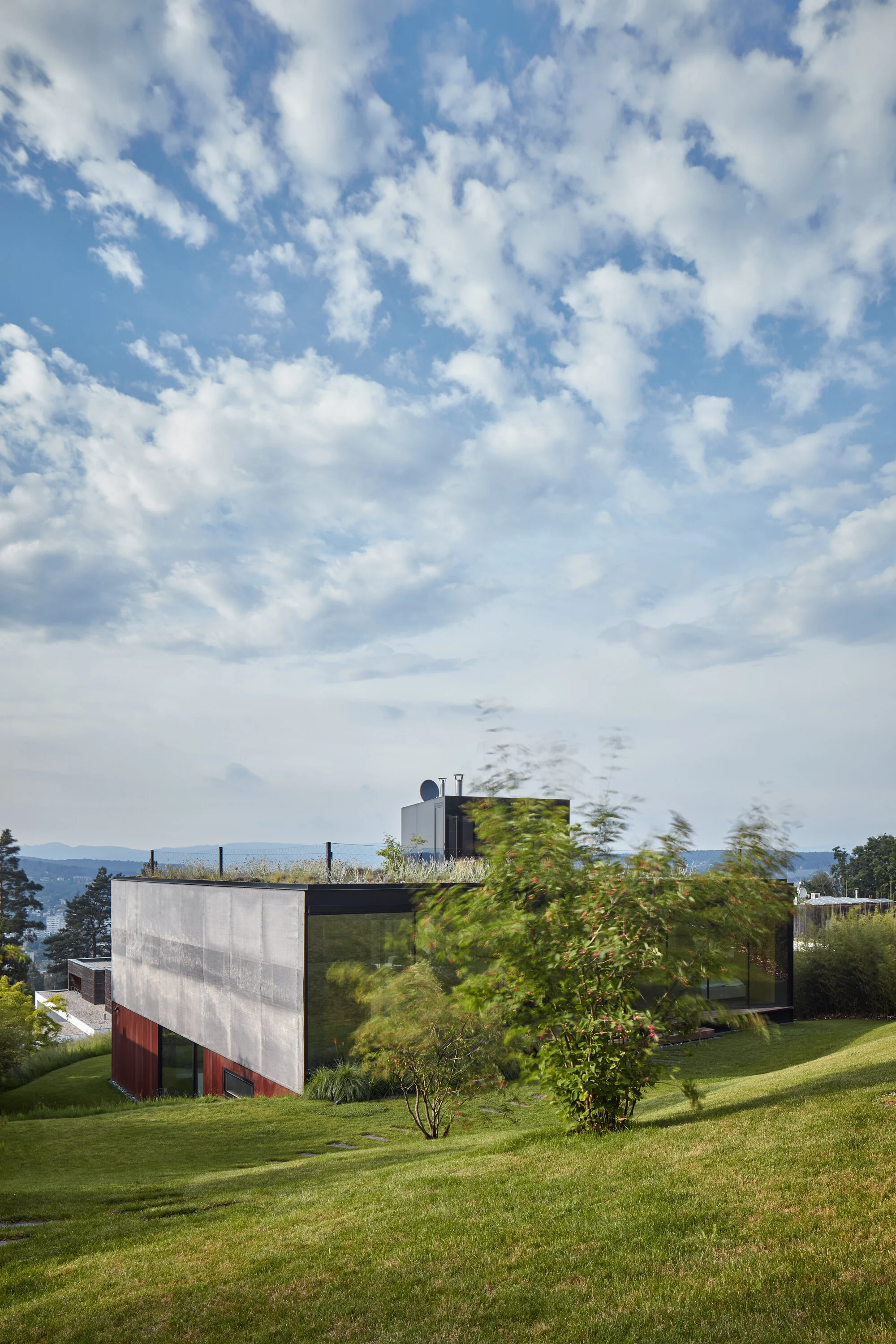 „Idea domu leží mimo jeho fyzickou podobu a je postavena zevnitř ven na principech prostorového propojení s prostředím, z něhož dům vyrůstá a do nějž se dívá. Logika konceptu stojí na vazbách mezi domem a městem, domem a jeho zahradou a zahradou a městem. Vztahové schéma pak navazuje uvnitř domu, kde plynutí interiéru společenské části protékající celým domem pocitově pokračuje do všech exteriérových a výhledových vazeb a vnitřním členěním odděluje soukromí jednotlivých privátních součástí s vlastními extrovertními vztahy.”